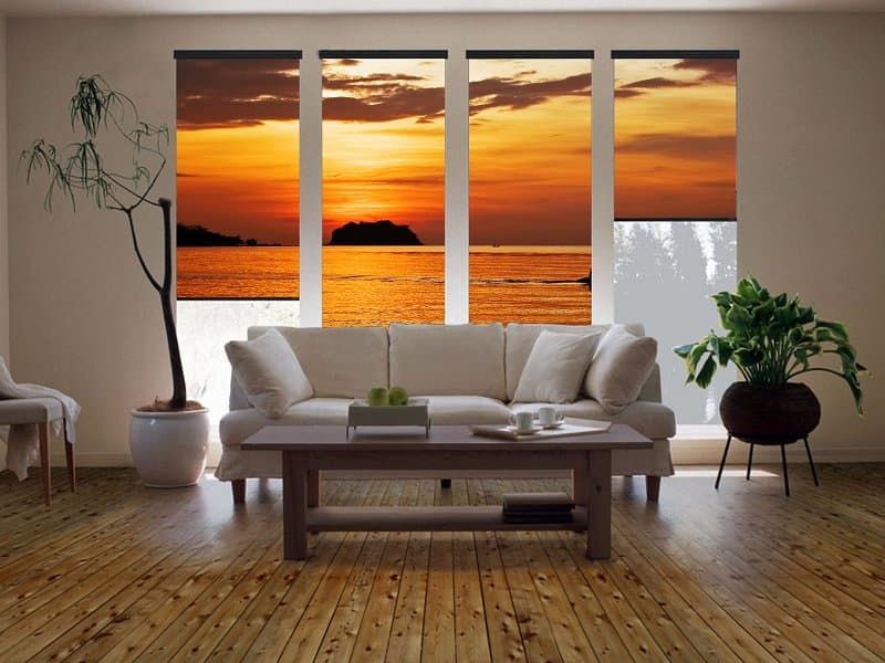 - Стойкость. Фотопечать на вертикальных жалюзи и рольшторах устойчива к выгоранию на солнце, не вымывается при стирке, не имеет запаха и не теряет своих свойств со временем.