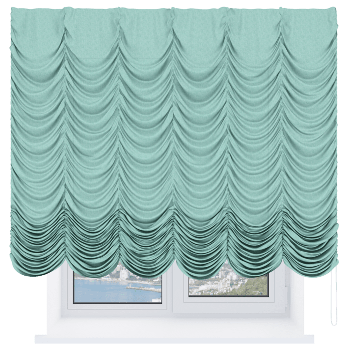 Французская штора лён кашемир мятный, карниз верёвочный