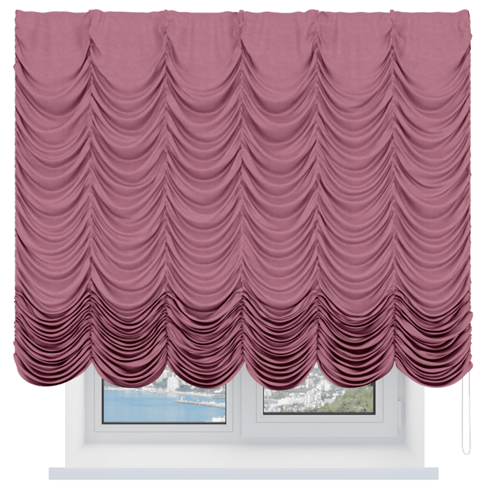 Французская штора вельвет брусника, карниз верёвочный