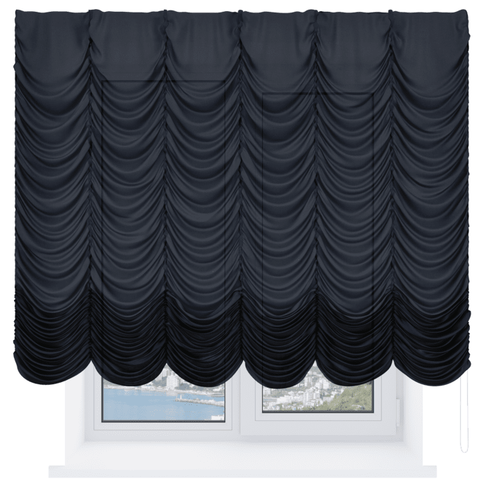 Французская штора лён черный, карниз верёвочный