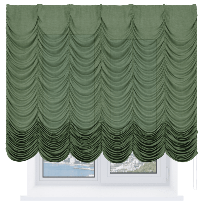 Французская штора вельвет тёмно-салатовый, карниз верёвочный