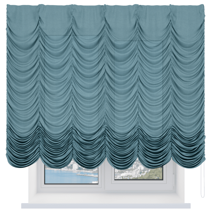 Французская штора лён кашемир голубой, карниз верёвочный