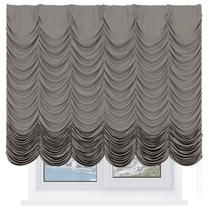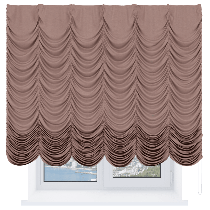 Французская штора вельвет тёмно-коричневый, карниз верёвочный